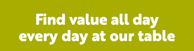 From lunch to dinner and even in between, you'll always find something you love for less.