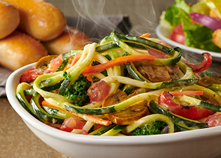 Perfectly portioned for lunch, get our Zoodles Primavera Pasta Bowl with unlimited soup or salad and breadsticks.