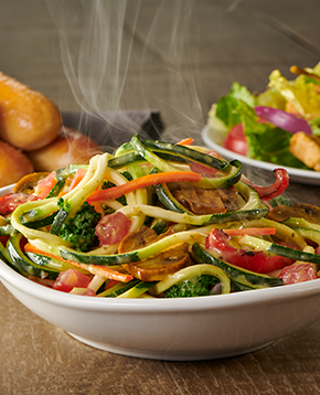 Perfectly portioned for lunch, get our Zoodles Primavera Pasta Bowl with unlimited soup or salad and breadsticks.