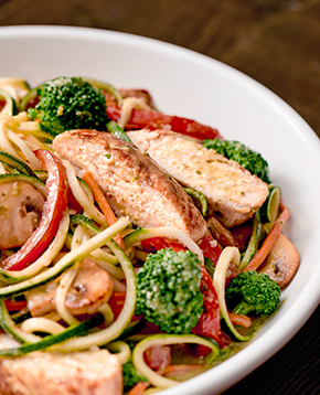 Add Grilled Chicken or Sautéed Shrimp to our Zoodles Primavera for even more delicious flavor.