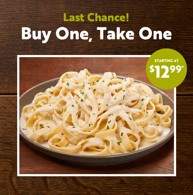 Hurry in for two nights of your favorites. Join us for one of your favorites today. Then bring home another for tomorrow. Starting at $12.99*.