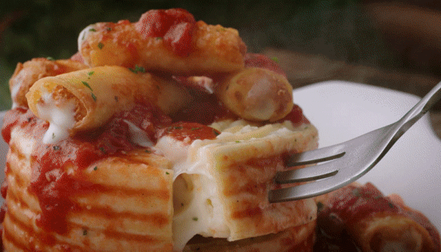 Create your own lasagna with our New! Lasagna Mia. Start with our New! Four-Cheese Lasagna Rollata and then top it with your choice of sauce and topping.
