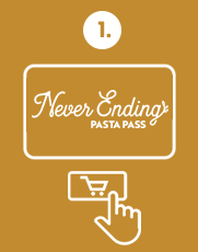 First purchase a Never Ending Pasta Pass. When you purchase a Pasta Pass®, you can opt in for the chance to upgrade your Pass to our New! Lifetime Pasta Pass.