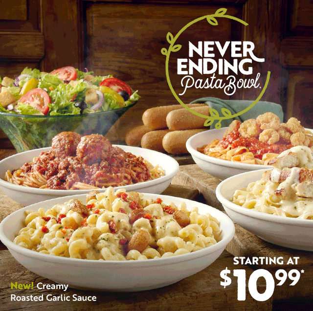 Keep the pasta, salad and breadsticks coming—Never Ending Pasta Bowl