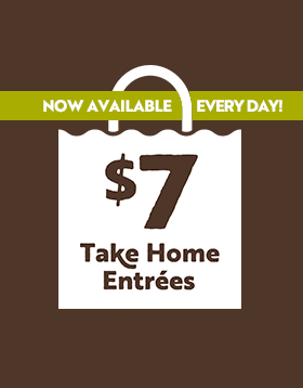 Enjoy any entrée with us and choose from four classics to take home for just $7 each.*