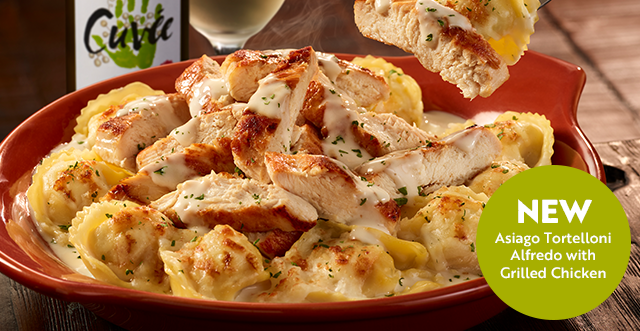 [FName, ]indulge in our New! Oven Baked Pastas. Enjoy your favorites baked bubbling hot, including NEW! Asiago Tortelloni Alfredo. Plus, all the garden-fresh salad and freshly baked breadsticks you want. Starting at $10.99*.