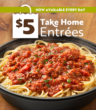 Take the celebration home! Join us for your favorite spaghetti combination and take home Spaghetti with Meat Sauce for just $5*.