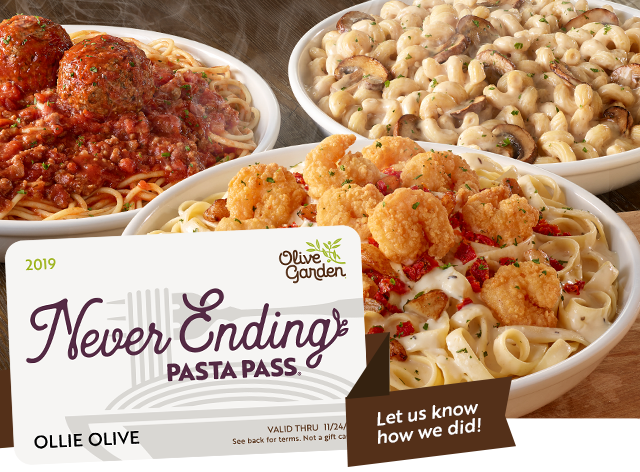 We hope you enjoyed your Pasta Pass®. We'd love for you to take a quick survey and tell us about your experience.