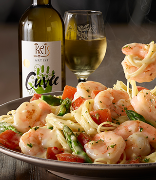 The fresh apricot, melon and lemon flavors of Kris Pinot Grigio highlight the delicate flavors in our Shrimp Scampi.