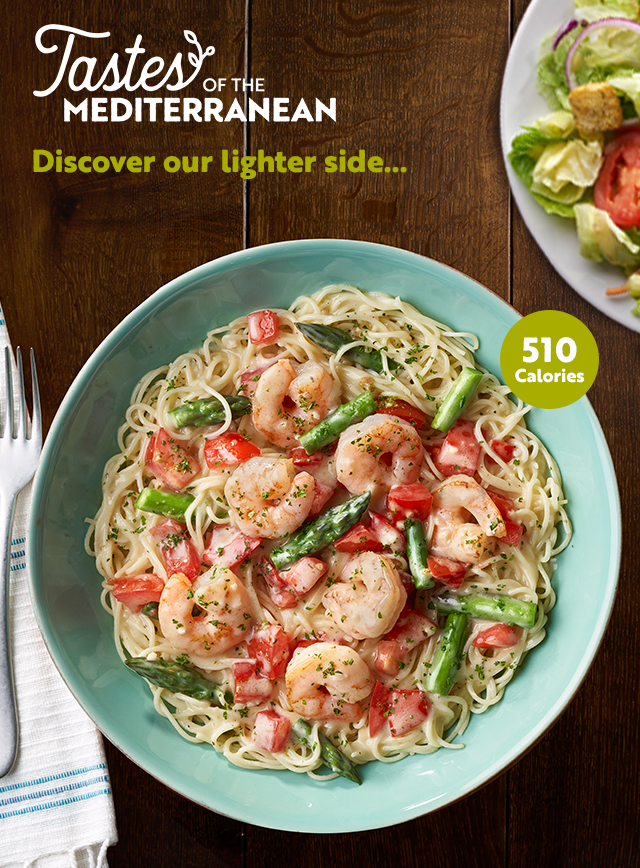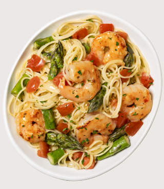 Inspired by Italy's southern coast, enjoy shrimp sautéed in garlic sauce and tossed with asparagus, tomatoes and angel hair pasta.
