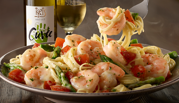 The fresh apricot, melon and lemon flavors of Kris Pinot Grigio highlight the delicate flavors in our Shrimp Scampi.