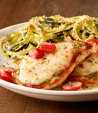 Get our New! Parmesan Crusted Zoodles as a side with some of our Tastes of the Mediterranean dishes—all under 600 calories.