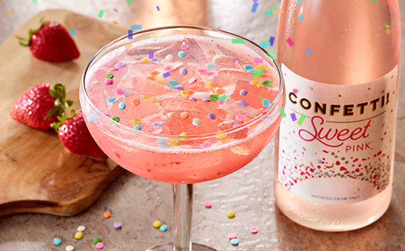 Enjoy our favorite wine in our New! Confetti Moscato Rita or a glass of our New! Confetti Pink Moscato Blend.