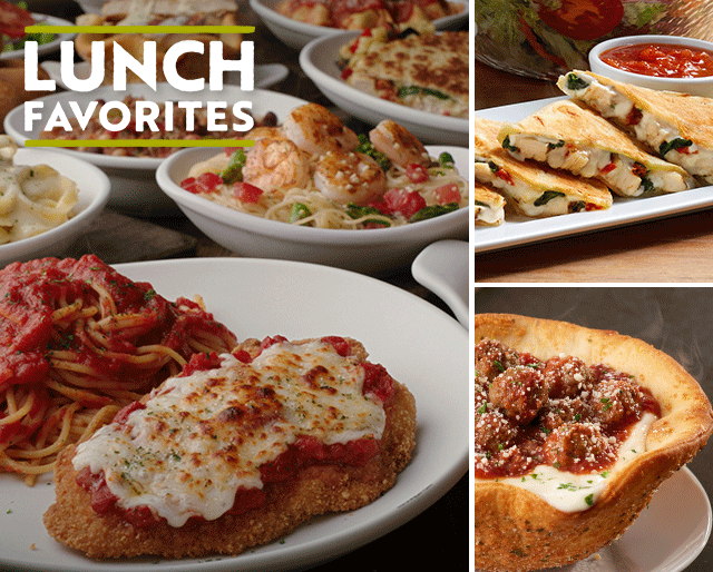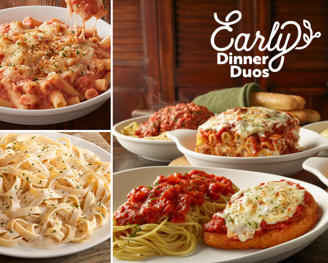 Join us from 3 to 5 p.m. Monday through Thursday for some of your favorite dishes paired with unlimited soup or salad and breadsticks for just $8.99.*