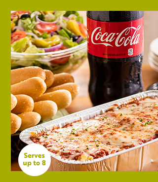 Gather around your table and enjoy our Family-Style Lasagna Bundle, including salad, breadsticks and a 2-liter soda.
