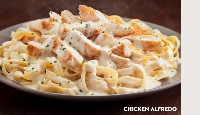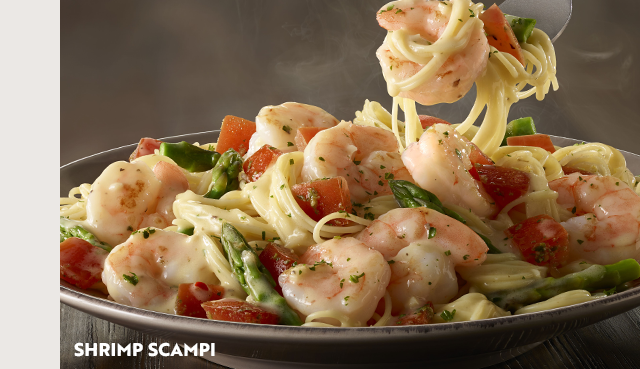 Enjoy our Classic Favorites ToGo, including Chicken Alfredo and Shrimp Scampi—or go big with our New! Giant Cheese Stuffed Shells. Plus, every entrée always comes with your choice of soup or salad and breadsticks.