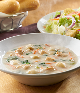 Take comfort in our classic combination with your choice of four homemade soups, garden-fresh salad and freshly baked breadsticks.