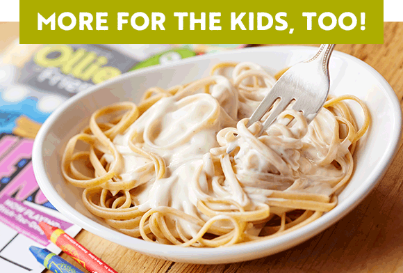 Kids can enjoy even more alfredo sauce with their choice of pasta.