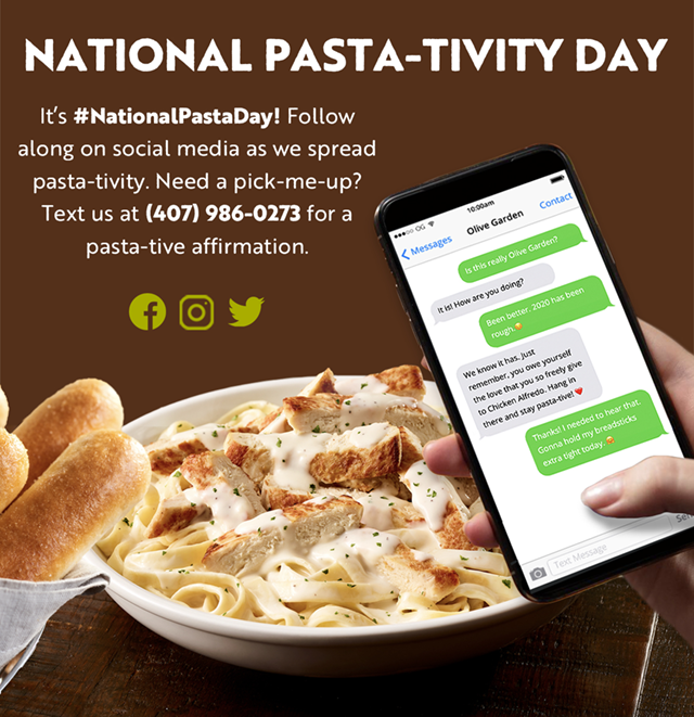 By texting in, you agree to receive recurring messages from Olive Garden.