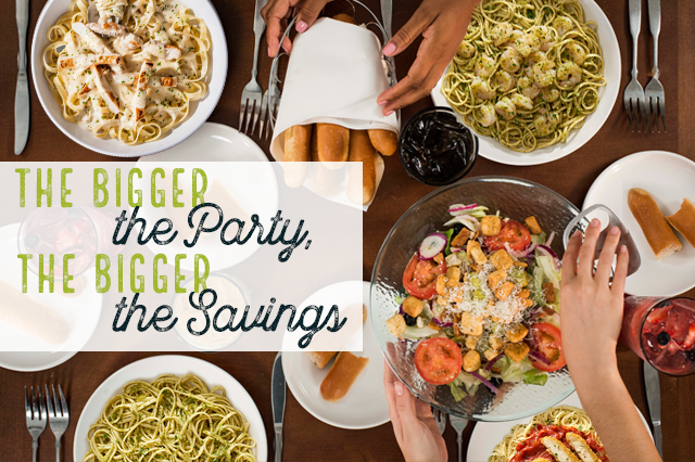 This coupon may be redeemed for 10% off a check with 2–3 entrées or 15% off a check with 4 or more entrées on a single check, up to a $50.00 maximum value. Excludes ToGo and Catering, alcoholic beverages, tax, and gratuity. Coupon may not be reproduced, sold, transferred or traded. One coupon per check. Coupon cannot be combined with any other coupon or used with any other offers. Sales tax paid by the bearer. Coupon may not be redeemed for cash. Cash redemption value 1/20 of one cent. Valid only at any Olive Garden Italian Restaurant location in the U.S. Offer Valid: [date]–[date].