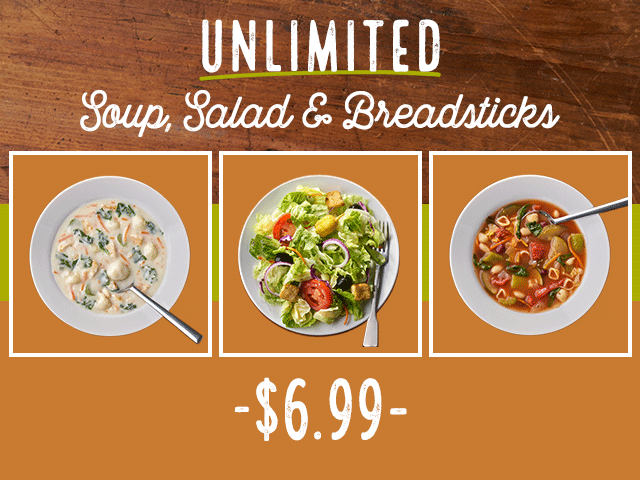 | $6.99 Unlimited Soup, Salad and Breadsticks |