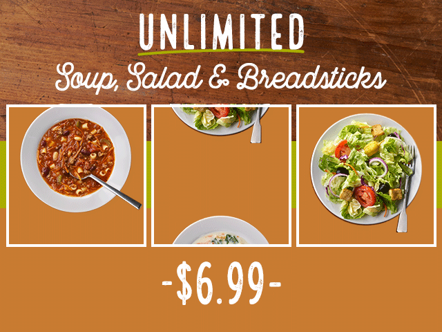 | $6.99 Unlimited Soup, Salad and Breadsticks |