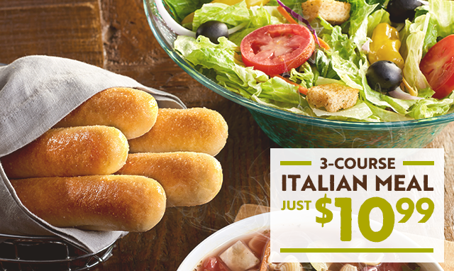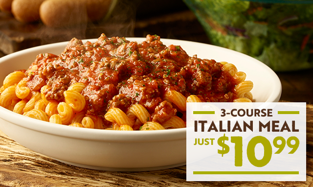 Start with unlimited soup or salad and breadsticks, then choose your favorite pasta and sauce combination from our Create Your Own Pasta menu. Finish on a sweet note with your choice of a Dolcini mini dessert. All for just $10.99.