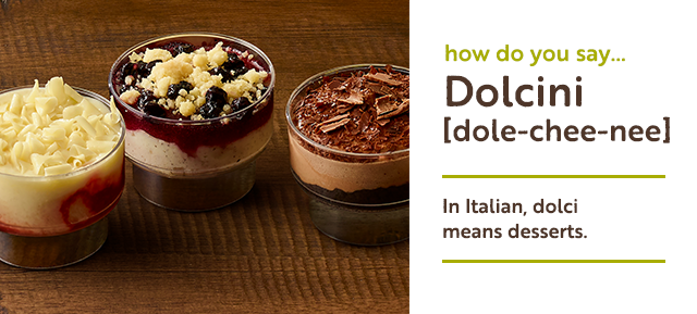 Love dessert? Swap your Dolcini for a full-sized dessert for only $3 more.