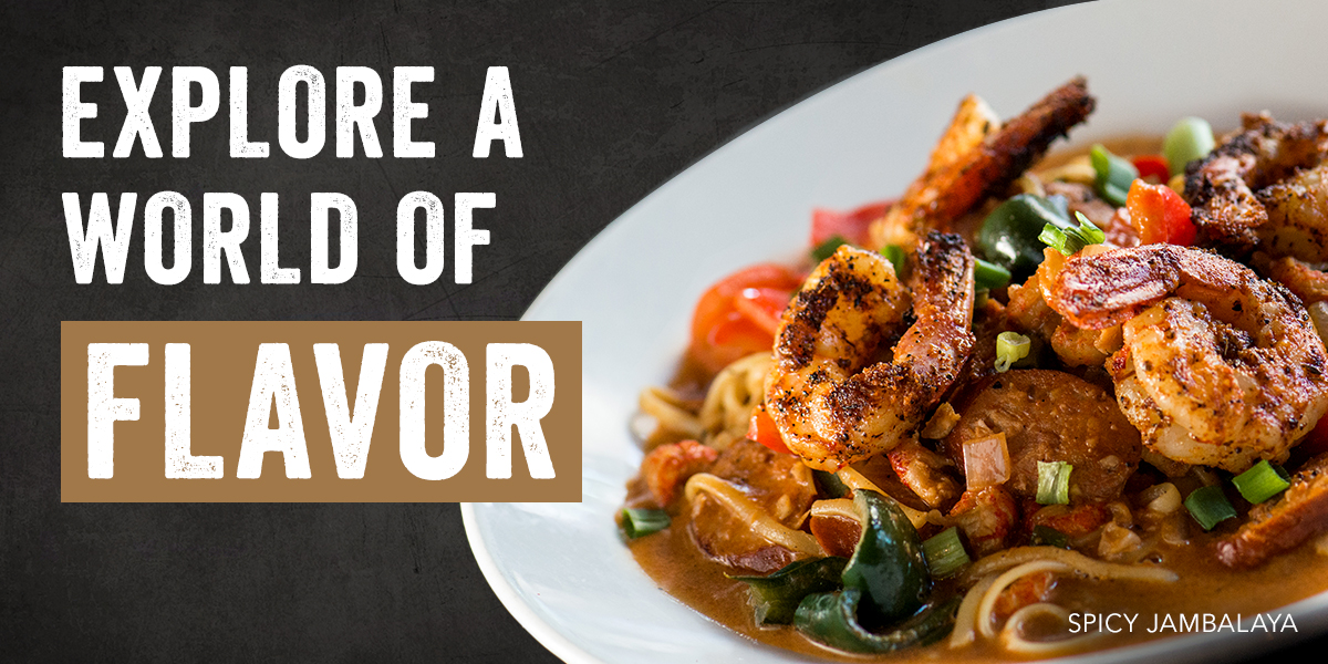 From Poke Nachos to Grilled Korean BBQ Beef, experience globally-inspired flavors from your own home. Enjoy authentic recipes, including our Spicy Jambalaya featuring crawfish, blackened shrimp and andouille sausage in a Cajun cream sauce.
