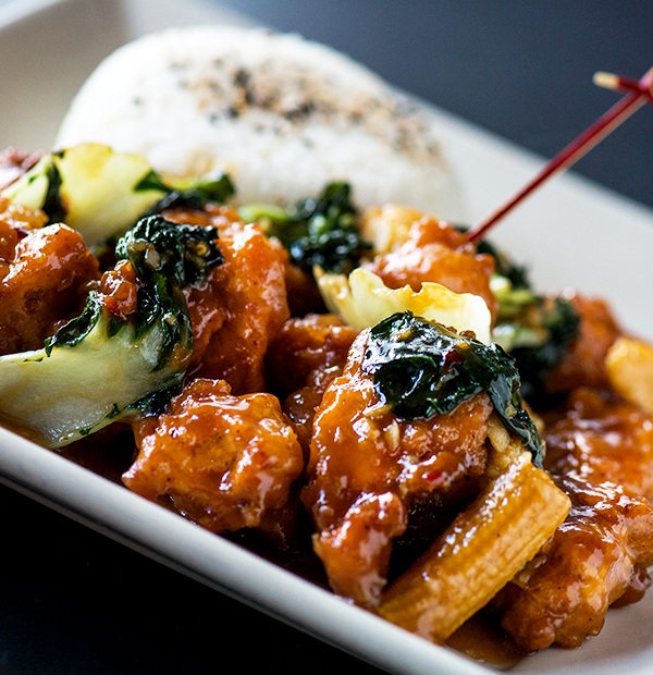 | Our Orange Chicken features flavors and ingredients inspired by Asia, including bok choy, jasmine rice and our take on the sweet and sour orange glaze. Enjoy it with Gardein™ for a vegetarian option. |