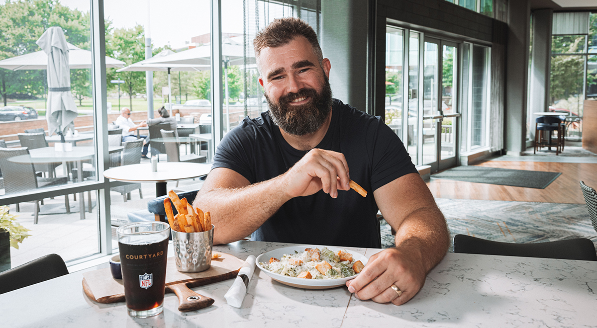 Every Thursday, all season long, Courtyard by Marriott and Marriott Bonvoy, The Official Hotel of the NFL, are teaming up with Jason Kelce — fresh off the field — to bring you exceptional experiences. Next up: You never know what is going to happen when Jason Kelce is involved. Meet us at the Courtyard in Philadelphia for a mystery experience. Packages launch on October 31 at 12pm ET.