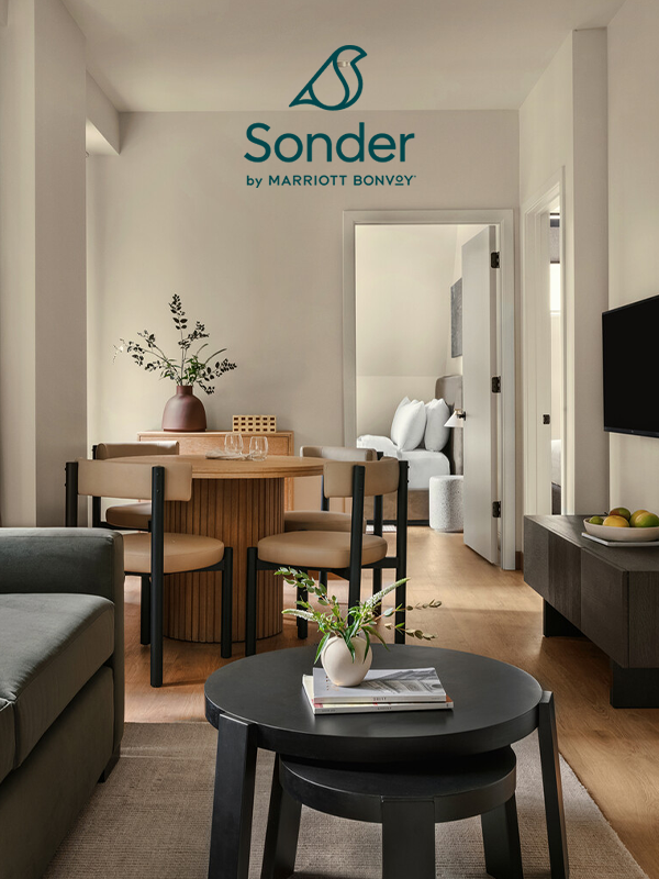 | The newest addition to our portfolio, Sonder by Marriott Bonvoy, provides a choice of stays in the cities you love, powered by an app that puts you in control. Choose from spacious apartments and hotels in 40+ cities with space for you, or your entire crew. Experience a better way to stay. |