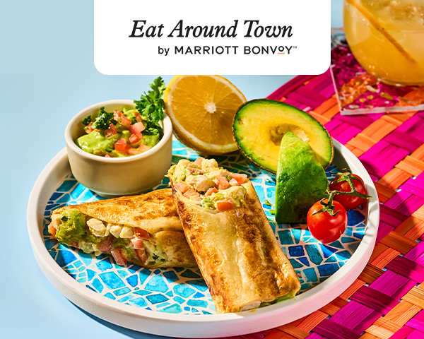 Eligible charges include food, drink, tax, and tip as charged to the linked card. Not valid on orders placed through third-party online ordering or delivery sites. To learn more about Eat Around Town or Marriott Bonvoy, click here. Please note that some restaurants offer rewards under this offer only on certain days of the week or up to a maximum spending amount per month. For the latest rewards calendar, visit eataroundtown.marriott.com. Other limitations may apply. Terms and Conditions are subject to change. For specific earn rate details regarding Eat Around Town, click here. Marriott Bonvoy points earned through Eat Around Town do not count towards elite tier qualification in the Marriott Bonvoy program. Please allow six to eight weeks from completion of your Eat Around Town transaction for points to appear in your Marriott Bonvoy account. The offer is not transferable, is not valid for groups and cannot be combined with other select offers.