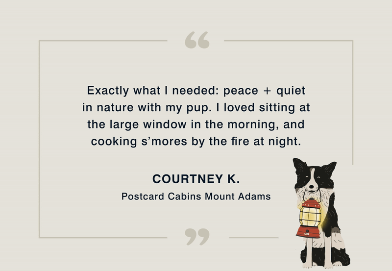 | Sometimes the simple solution is just slowing down and spending time in nature with your furry friend. With space to run and twigs to fetch, dogs of all sizes are always cherished guests in our cabins. |