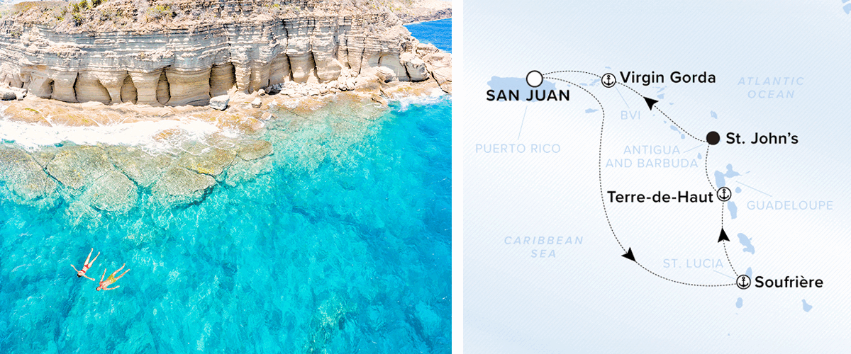 Find paradise on the serene shores of Guadeloupe and Antigua’s secluded sands. Venture to Virgin Gorda’s mystical grottoes aboard Ilma for an adventure-filled journey.